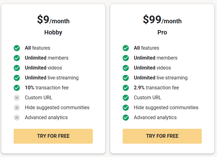 When we draw comparisons with other players like Mighty Networks, Circle, and the now Kajabi-acquired Vibely, each comes with its own set of features and pricing plans.